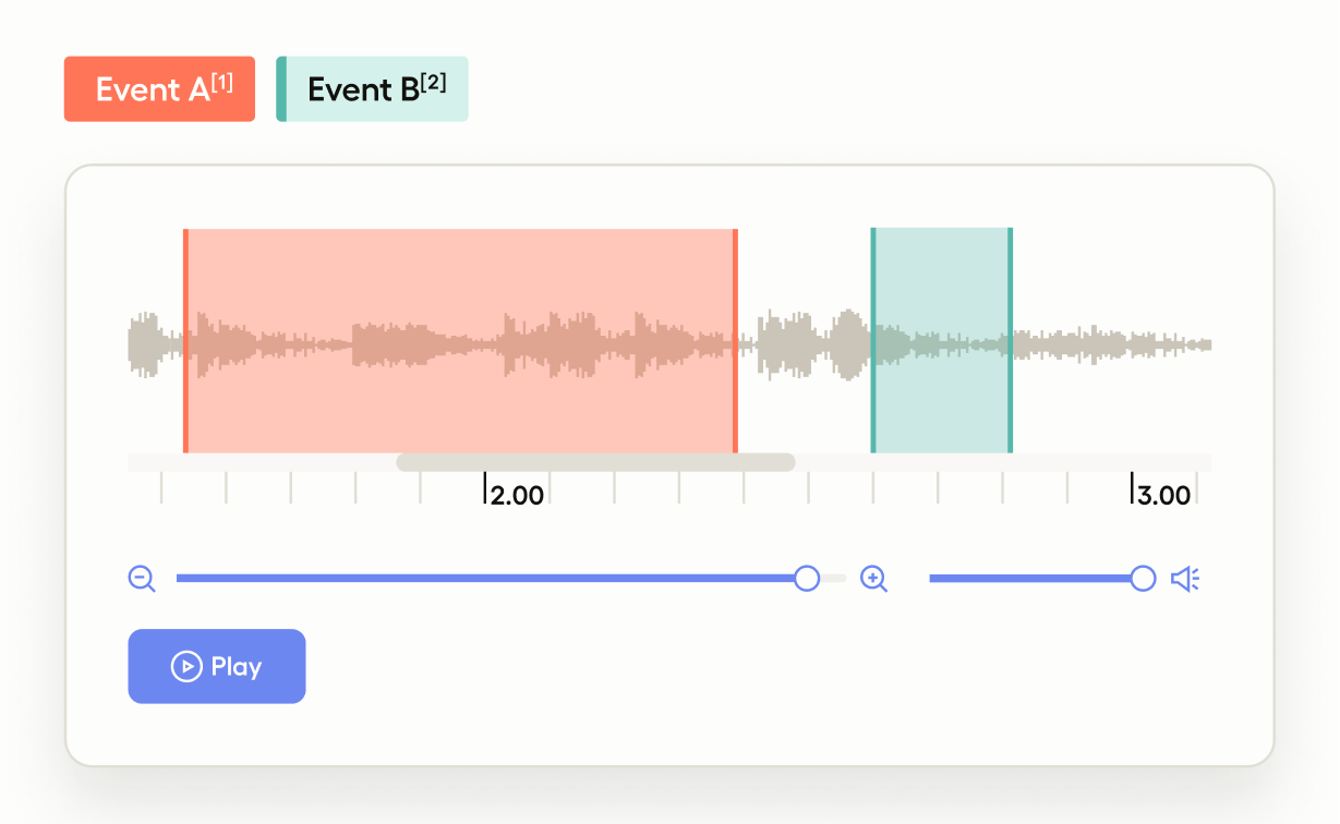 For cases when you need to improve sound event detection, use this template to play an audio clip and label specific audio regions according to which event sound is audible from.
